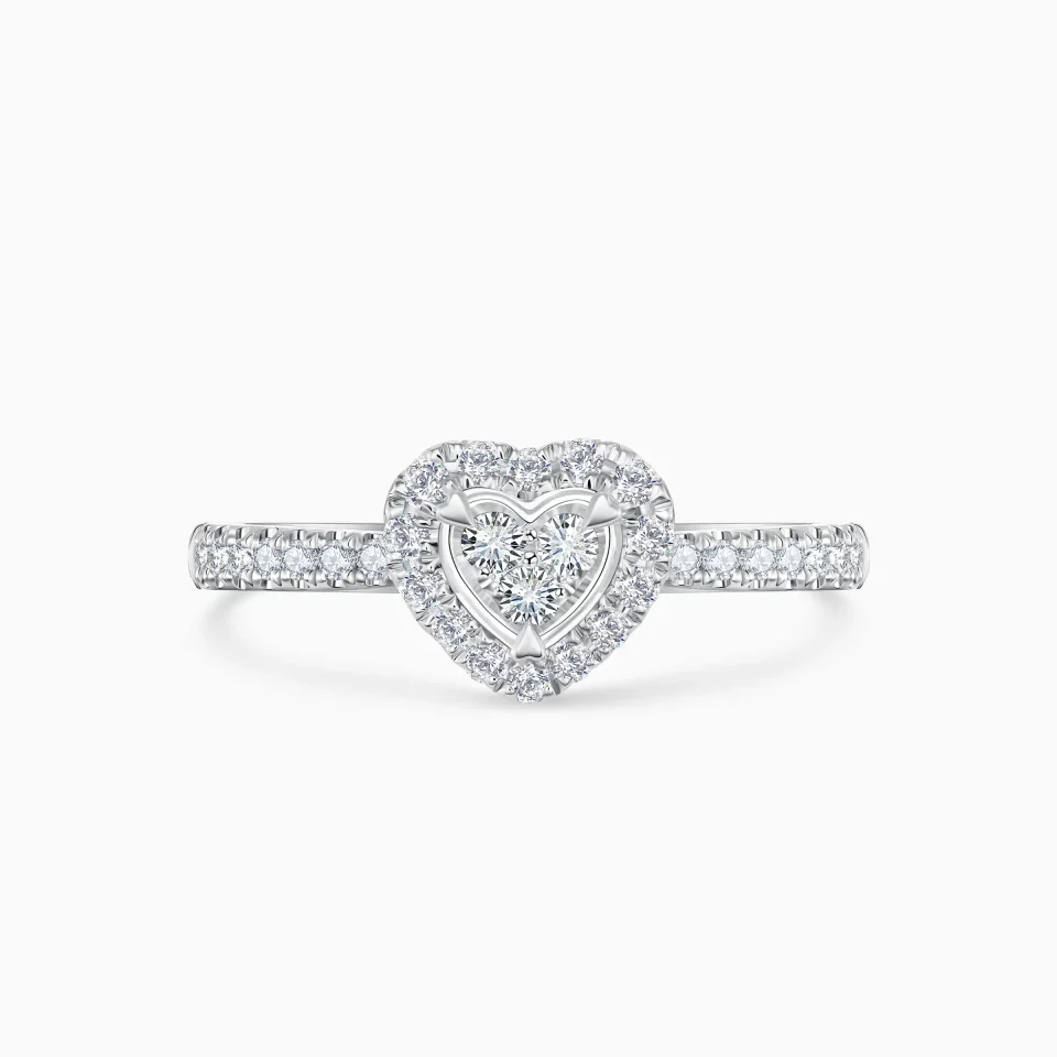 Heart shaped Halo Micro-Suspension Pavé Engagement Ring White Gold Accent Promise Ring