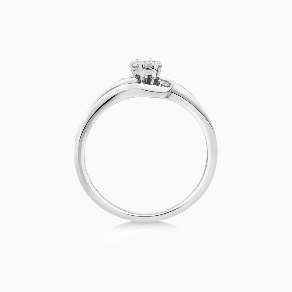 14K White Gold Round Cut Engagement Ring Cluster Floral Halo Bypass Promise Ring