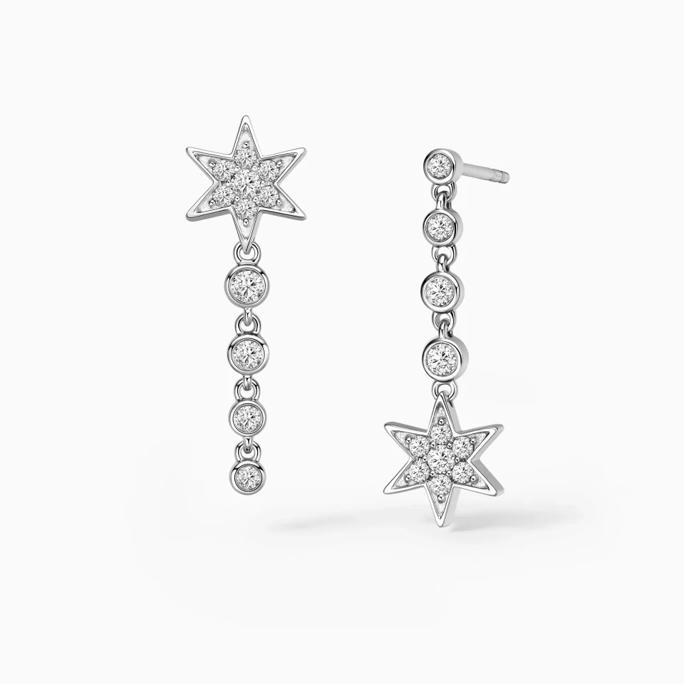 10K/14K/18K White Gold Diamond Pavé Star Asymmetry Drop Earrings