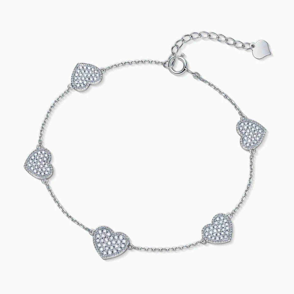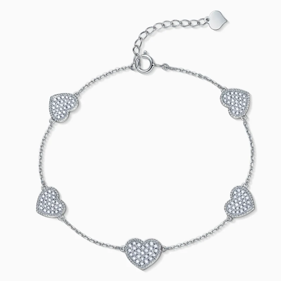 18K White Gold Diamond Five Heart Chain Bracelet