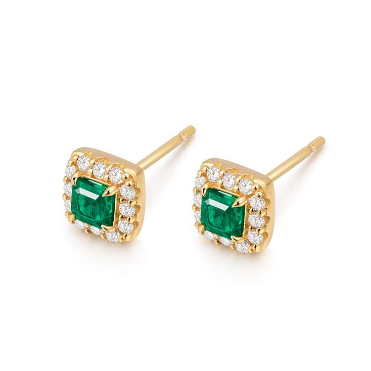 18K Yellow Gold Emerald and Diamond Stud Earrings