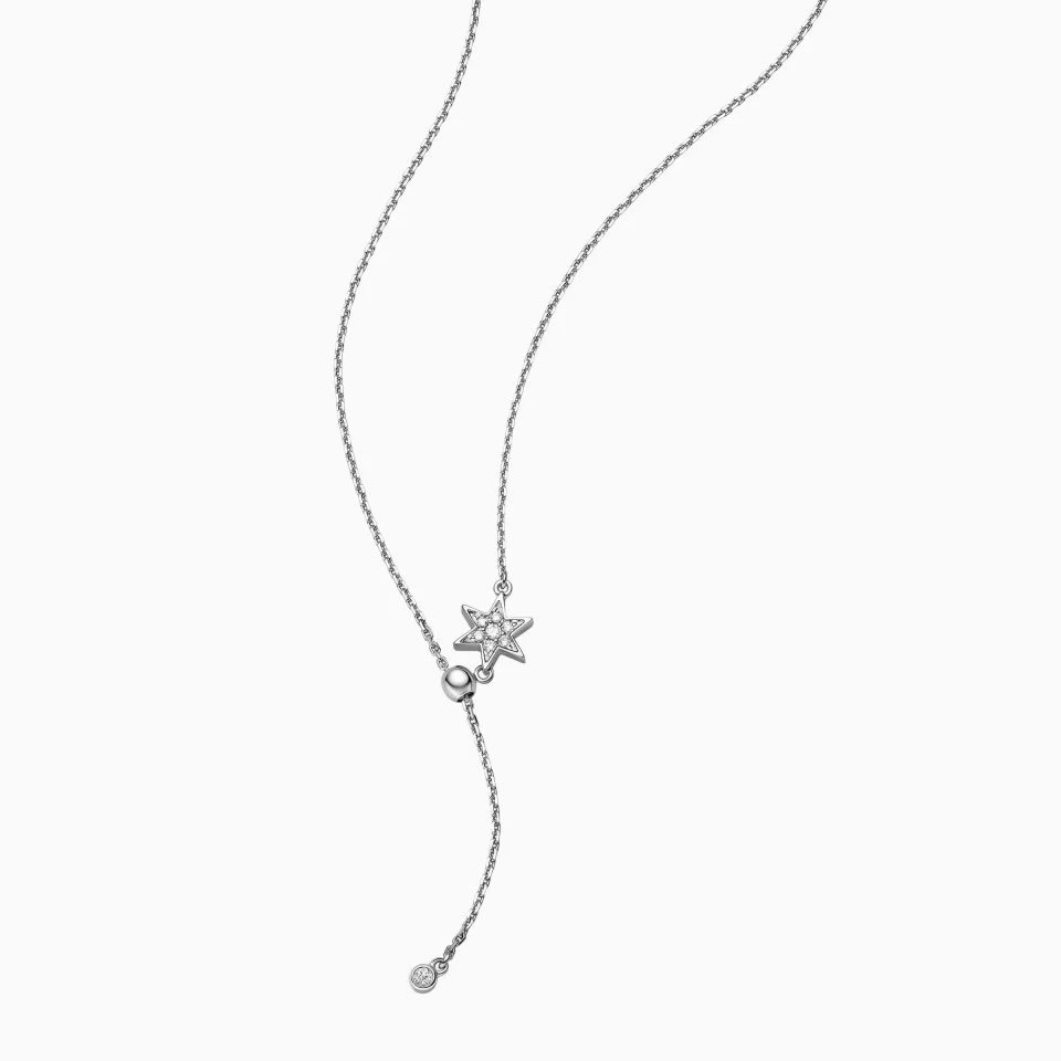 18K White Gold Round Diamond Pavé Star shape Necklace