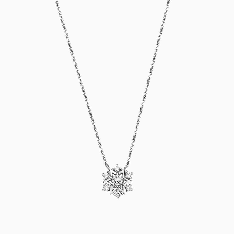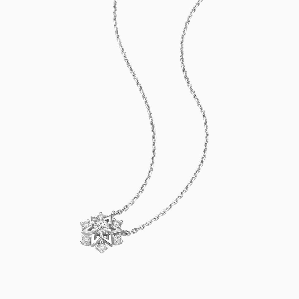 Round Diamond Star Shaped Pendant Necklace in 14k White Gold