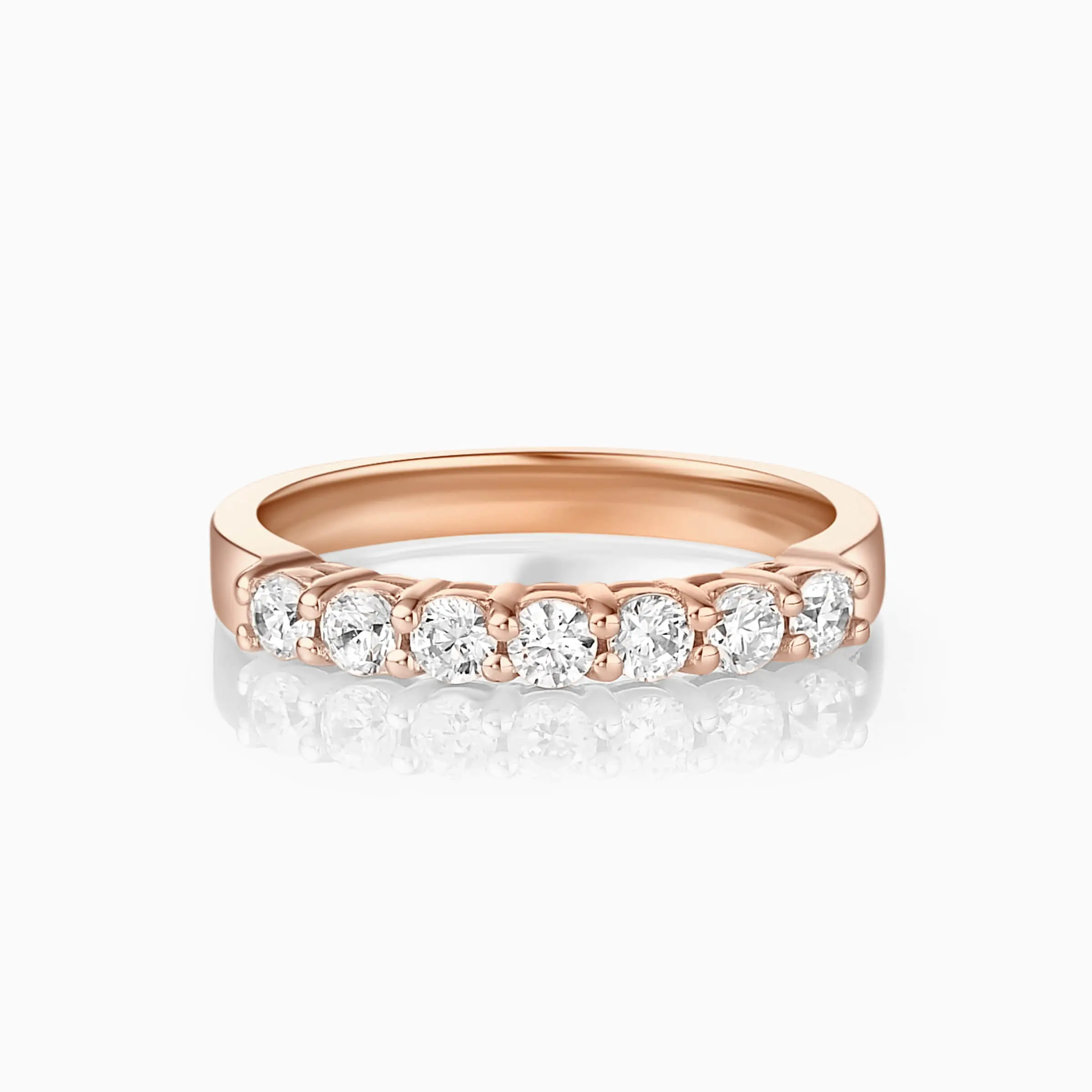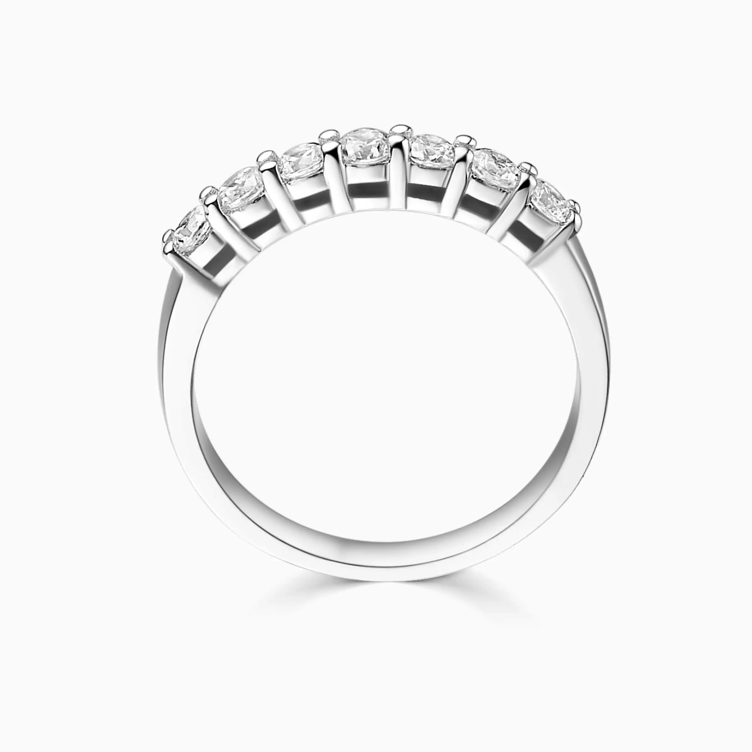 This marvelous 14K white gold band is designed with 7 round brilliant cut diamonds .The design not only has glamour, but also the versatility to be worn alone or paired with one of our stunning engagement rings.